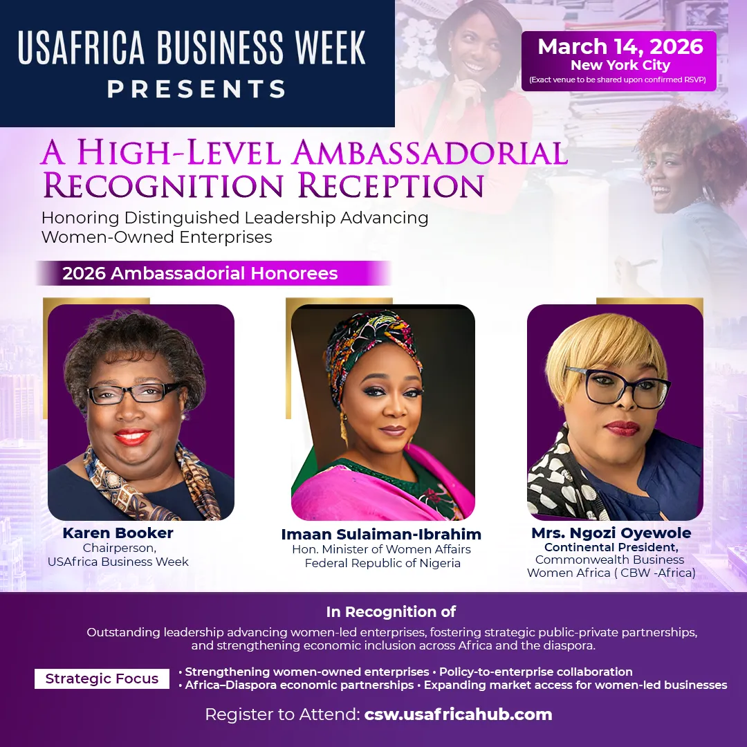 Outstanding leadership advancing women-led enterprises, fostering strategic public-private partnerships, and strengthening economic inclusion across Africa and the diaspora.